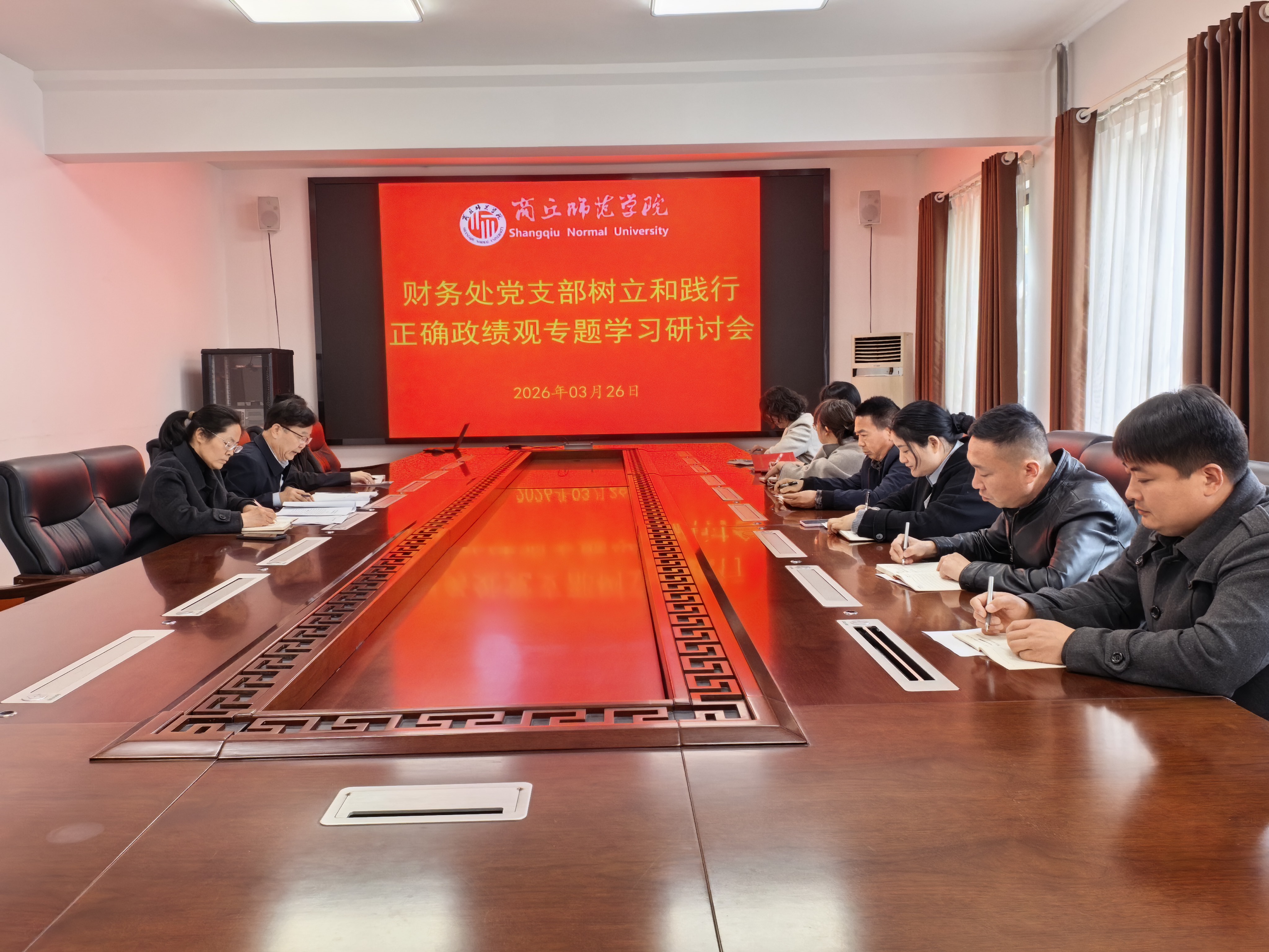 为深入学习贯彻习近平总书记关于树立和践行正确政绩观的重要论述,落实校党委和机关党委工作部署,3月26日,财务处党支部举办树立和践行正确政绩观学习教育读书班,全体党员同志参加学习研讨。